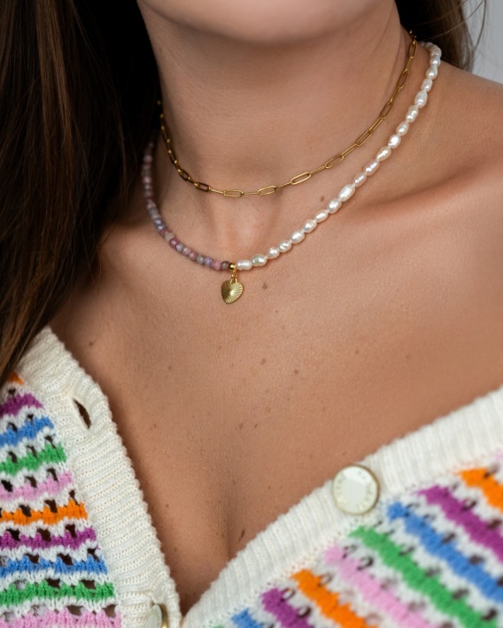 Choker pół na pół: turmalin i perła naturalna, z zawieszką serca